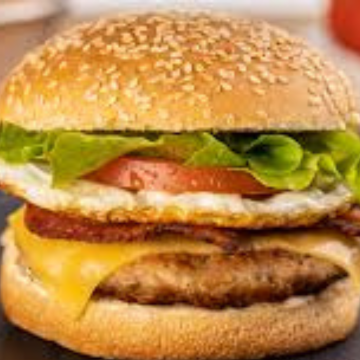 Hambúrguer suculento com 1 carne, queijo, alface, tomate, milho, ervilha e molhos especiais.