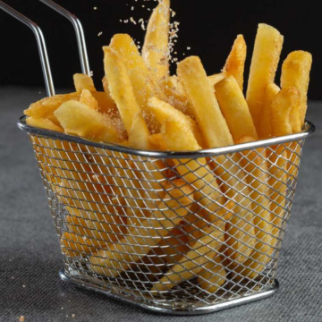 Porção de batata frita dourada e sequinha, perfeita pra matar a vontade.