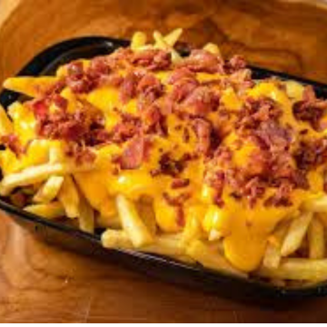 Porção grande de batata frita crocante, coberta com cheddar cremoso e bacon crocante, ideal pra compartilhar ou matar a fome de vez.